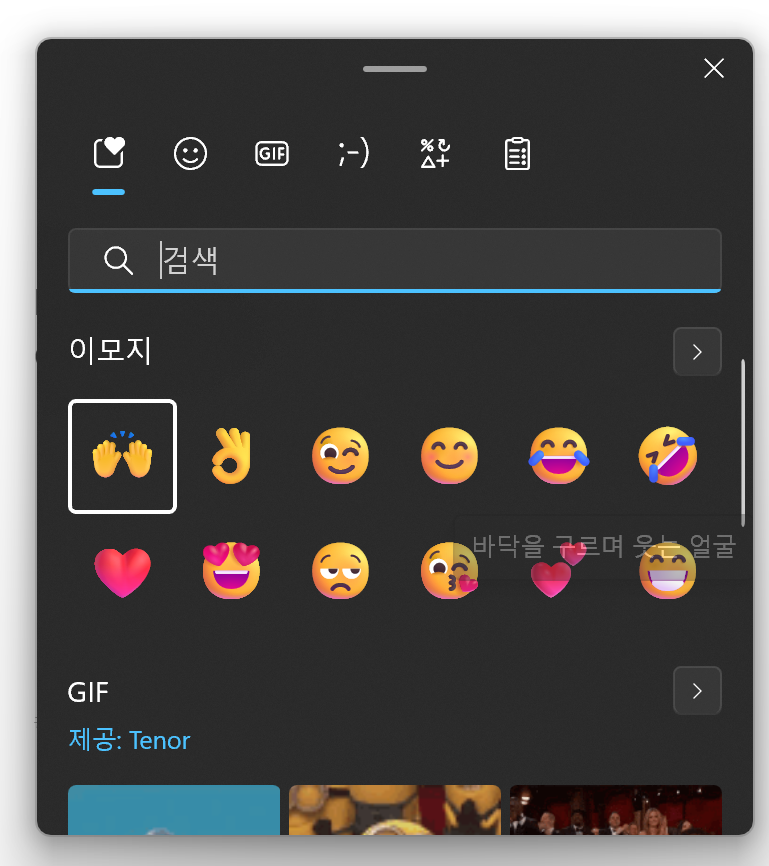 - Window + .(온점) 또는 Window + ;(세미콜론)