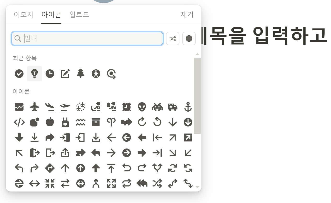 노션과는 살짝 다르지만, 이런 식으로 나옵니다. 클릭 시 노션과 동일한 이모지로 반영됩니다.