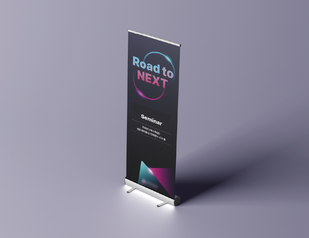 조금 심심해 보일 수 있는 부분은 '연결'을 상징하는 두 개의 링 요소를 추가해 채웠습니다. Road to NEXT라는 주제를 시각적으로 한 번 더 강조하는 효과를 노렸어요.