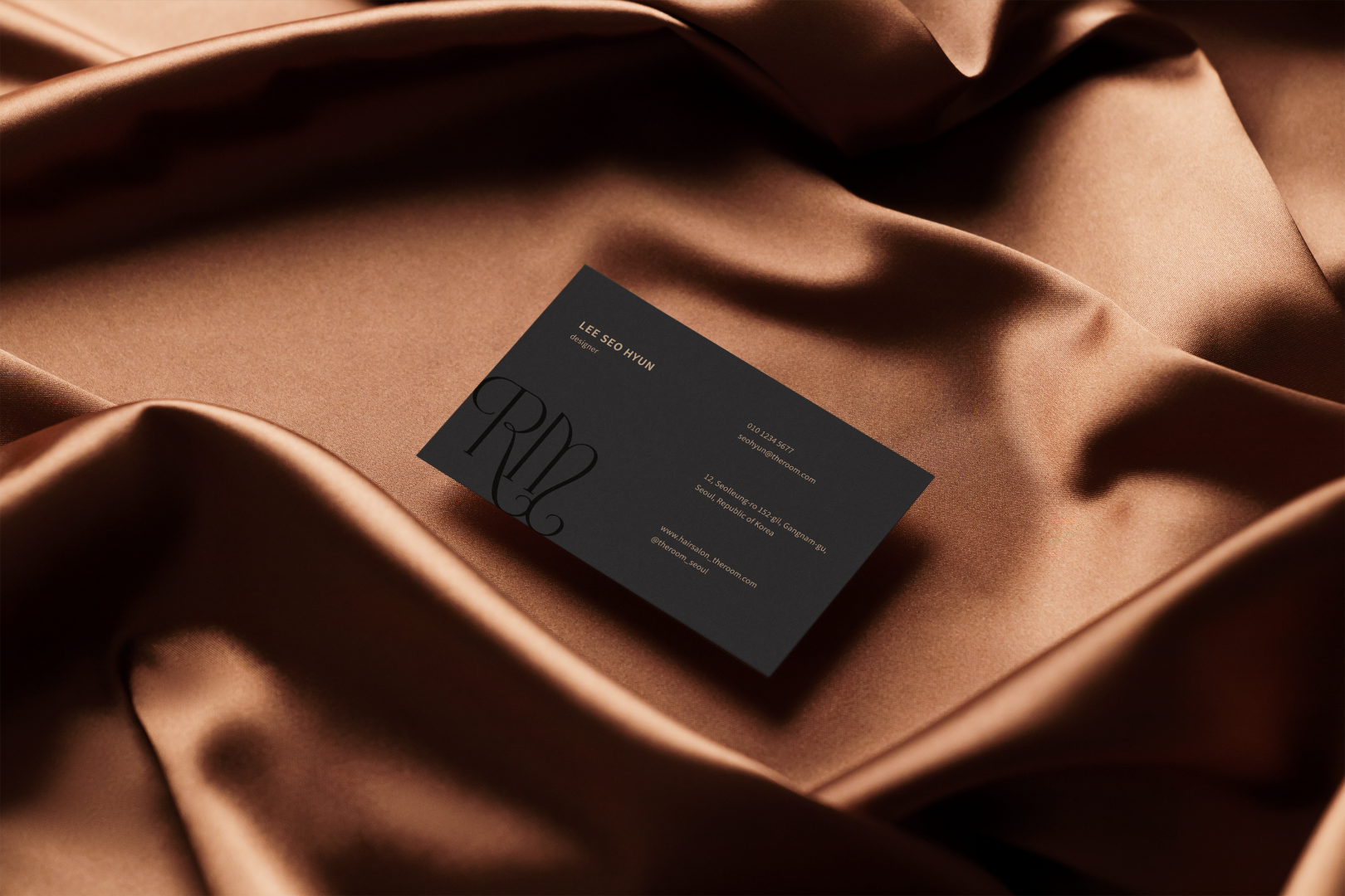 보통 가독성을 위해 어두운 배경엔 흰색 글씨를 쓰지만, 프리미엄 명함의 묵직한 무드를 위해 과감하게 대비를 낮췄어요. 덕분에 눈이 편안하면서도 차분함 느낌이 잘 살아난 것 같아요.