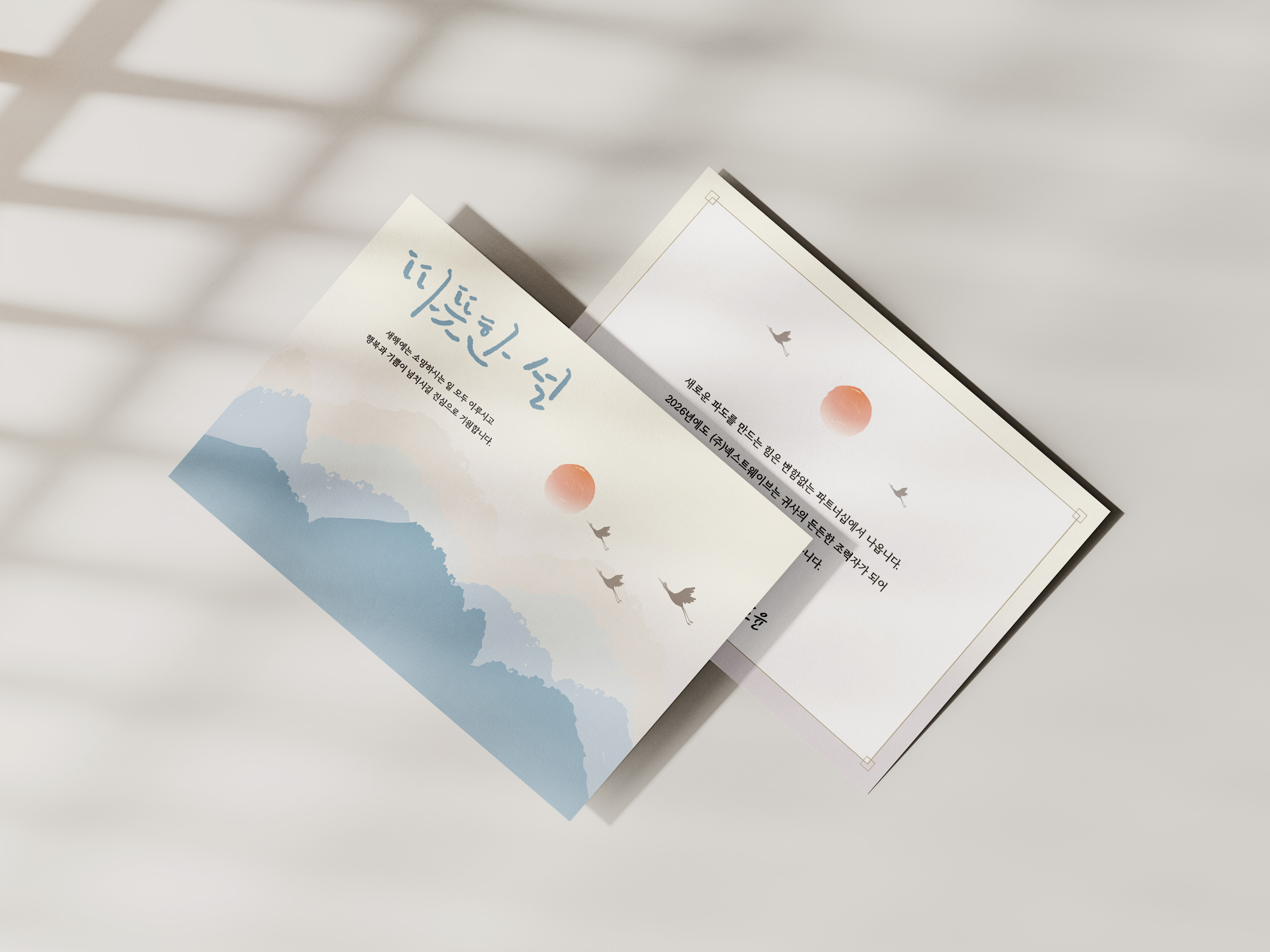 이번 2026년 설날 연하장은 엽서형 새해 인사 카드로 제작했어요.